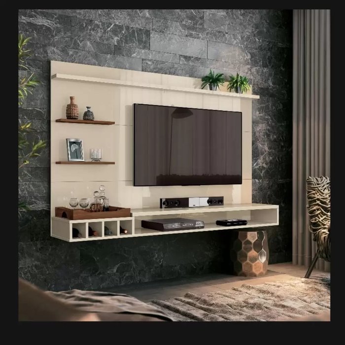 Produzida com materiais de qualidade e com praticidade para o seu dia a dia, possui adega para garrafas e prateleiras, trazendo elegância para o móvel. Suporta TV de até 55 polegadas.