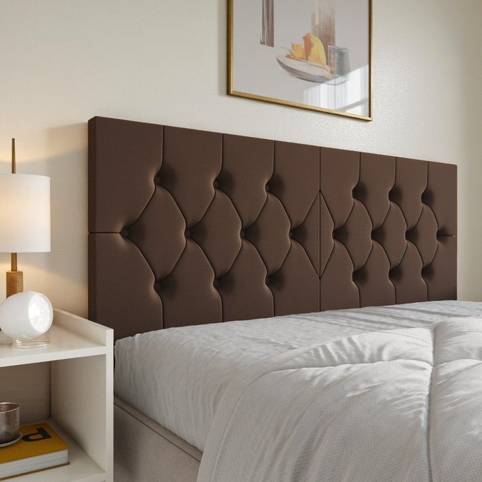 Painel Cabeceira Box Solteiro Luxo Capitonê Elisa Estofada Suspensa 90cm:marrom