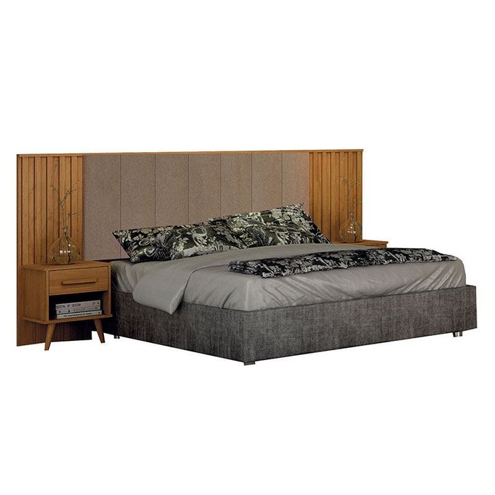 Painel Cabeceira Casal Queen Milano Estofada com Criado Cinamomo Joli Camurça – Leifer Móveis