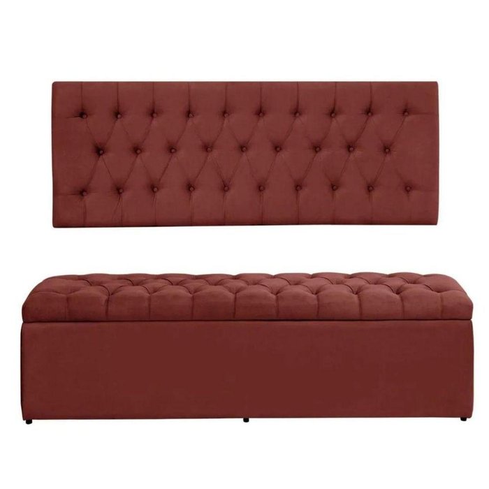 Painel Cabeceira Com Bau Calçadeira Dubai 1.93mt -suede Vermelho