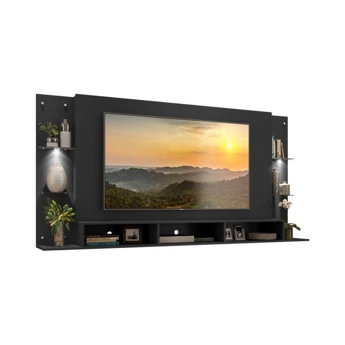 Painel com Suporte TV 65 Polegadas e 2 LEDs Vegas Premium Multimóveis Preto