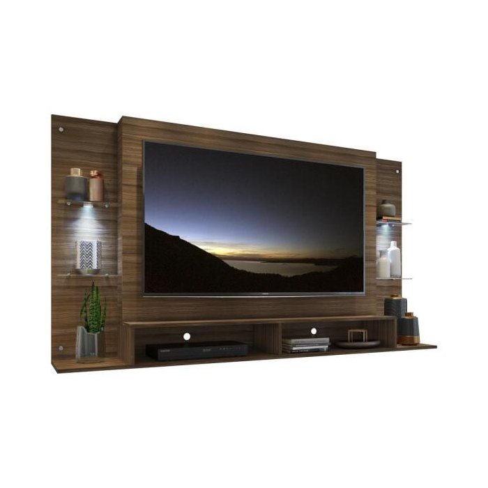 Painel com Suporte TV até 60 Polegadas e 2 LEDs Prateleiras de Vidro Vegas Multimóveis Madeirado