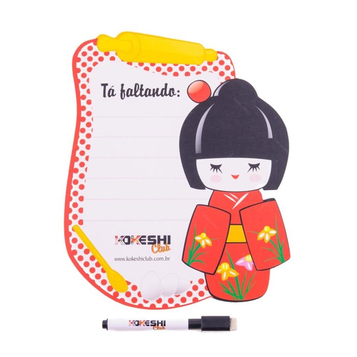 Painel de Anotações Kokeshi Coque Vermelho - 20x25 cm