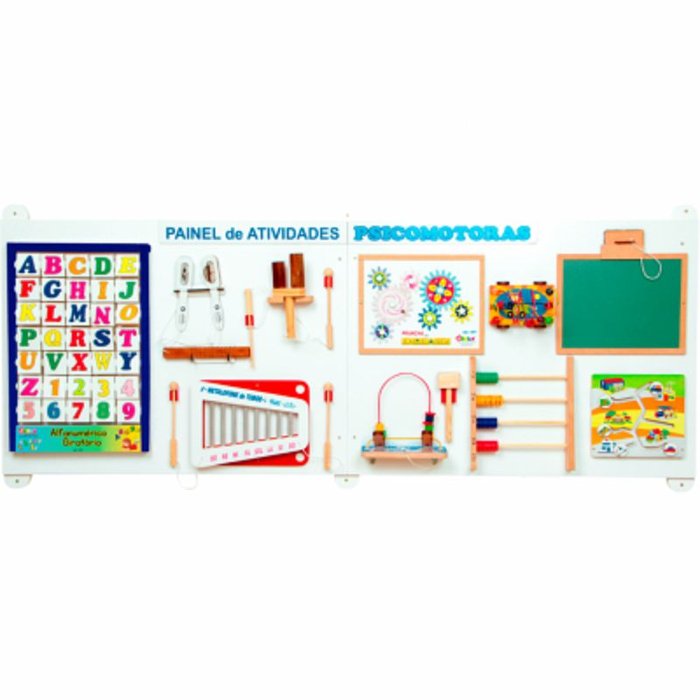 Painel de Atividades Psicomotoras Carlu em Mdf 11 Atividades - Ref 3111 - Medidas 1,84m X 15x 75,5 C Branco