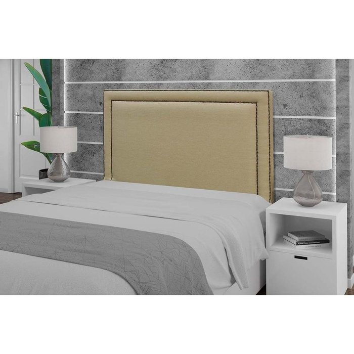 Painel de Cama Box Estofada Cabeceira Dinamarca Plus Queen 160 Creme - Simbal