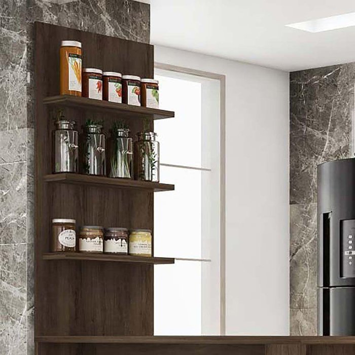 Painel De Cozinha 3 Prateleiras Suprema Nogueira