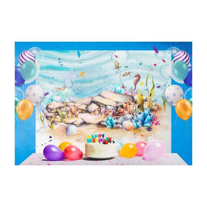 Painel De Festa Infantil fundo do mar Em Tecido - 1,5x2,0m