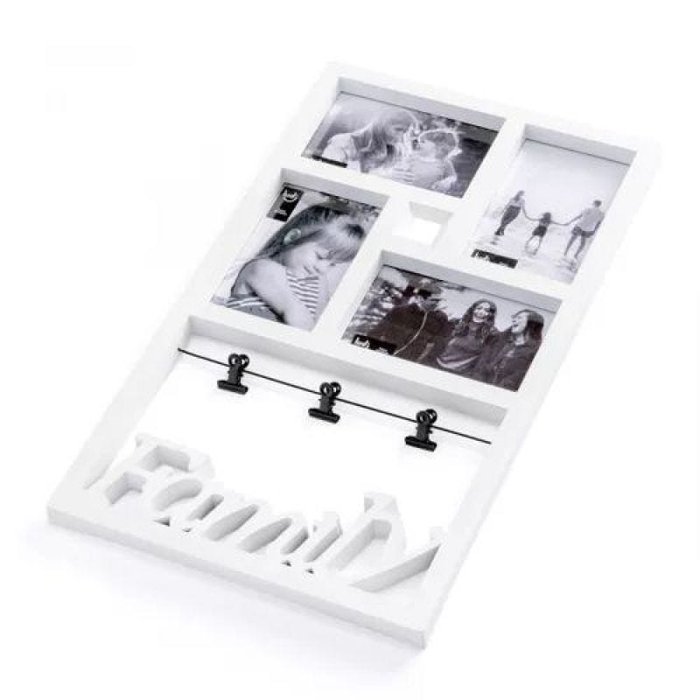DESCRIÇÃO DO PRODUTO Família que é família gosta de guardar fotos em álbuns, mas também gosta de deixar todos os momentos especiais em família à mostra, como parte da decoração da casa. Assim, estes momentos podem ser lembrados o tempo todo e o ambiente ainda ganha um toque de aconchego. Afinal, o que é bom merece ser lembrado. Este painel é branco e tem espaço para 4 fotos 10x15cm e 3 fotos 6,3x6,3cm. O mais legal é que além de vir com a palavra 'family' ('família') em destaque, tem três clipes simulando um varal de fotos. Presente criativo é aqui! CARACTERÍSTICAS DO PRODUTO Largura: 27,5 cm Altura: 46 cm Capacidade: 4 FOTOS 10X15 CM E 3 FOTOS 6.3X6.3 CM Profundidade: 2 cm Matéria-prima: Plástico IMPORTAMTE SABER