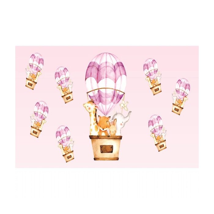Painel De Lona Animais Balões Céu Rosa Aquarela