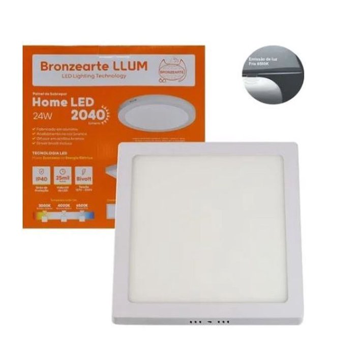 Painel de LED de Sobrepor 24W Luz Amarela 286x286x25mm Home LED LLUM Bronzearte