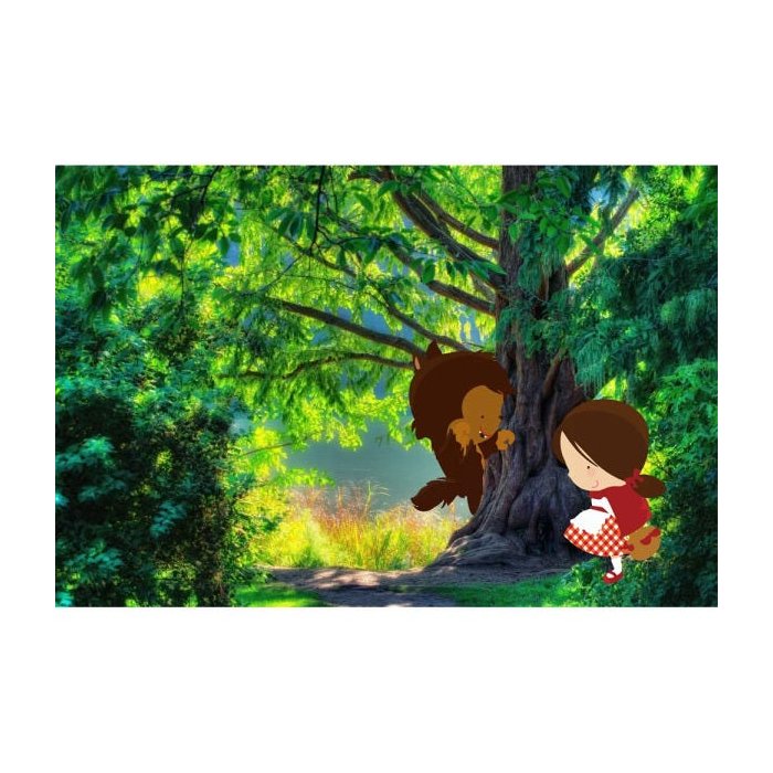 Painel de Tecido Sublimado Chapeuzinho Vermelho e o Lobo Floresta
