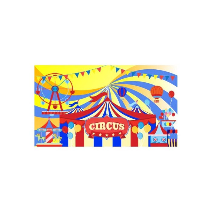 Painel de Tecido Sublimado Circo Menino Azul e Vermelho