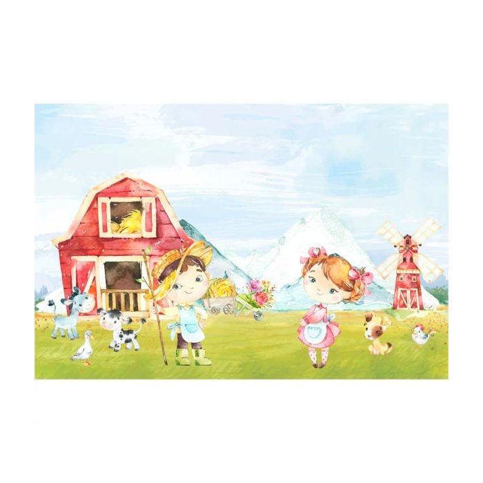 Painel de Tecido Sublimado Fazendinha Aquarela