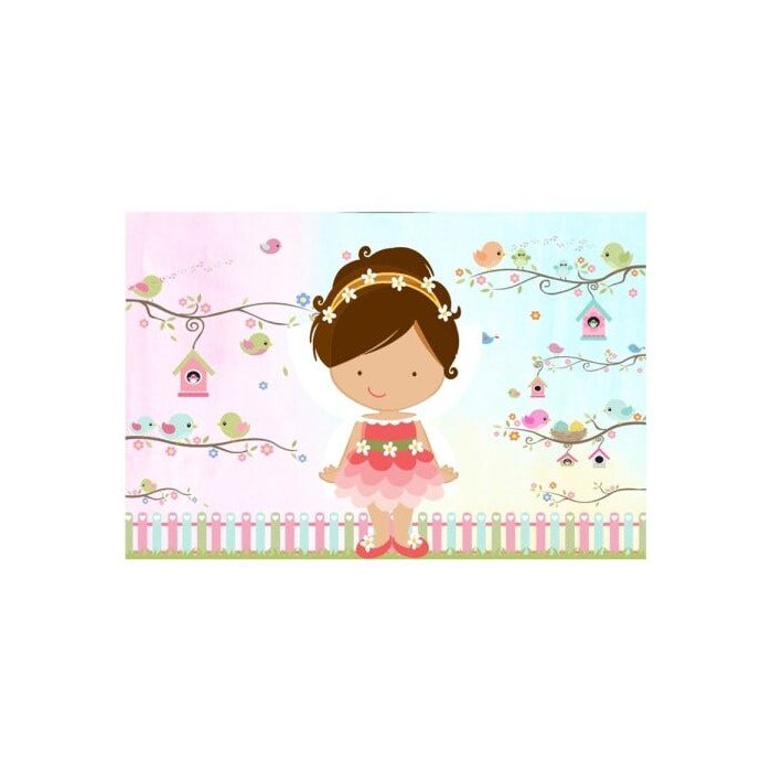Painel de Tecido Sublimado Jardim Encantado Fada e Passarinhos