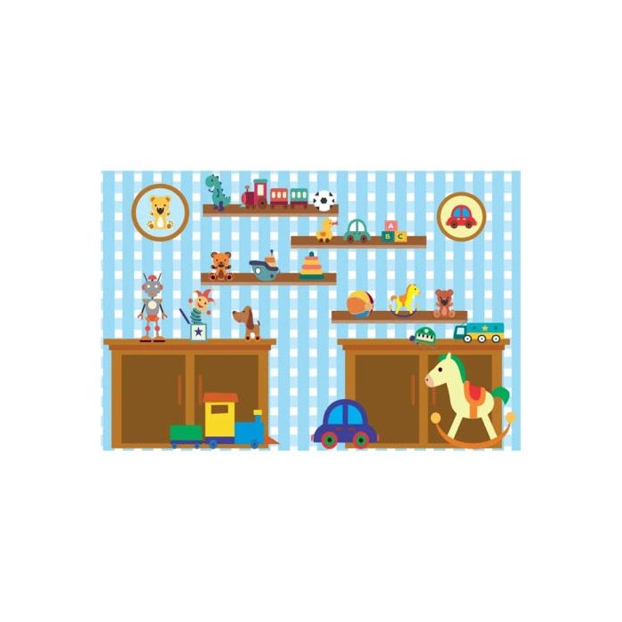 Painel De Tecido Sublimado Quarto De Brinquedos Menino Fundo Azul