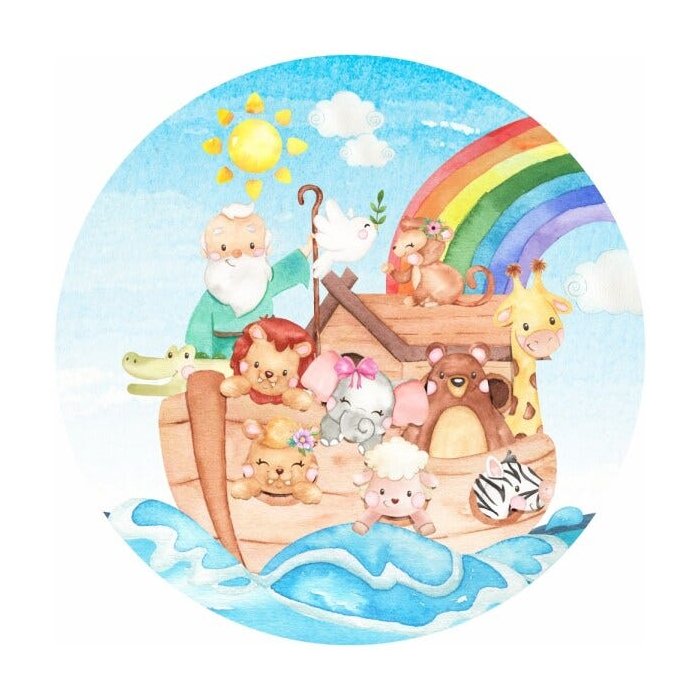 Painel de Tecido Sublimado Redondo Arca de Noe Infantil Aquarela com Elastico