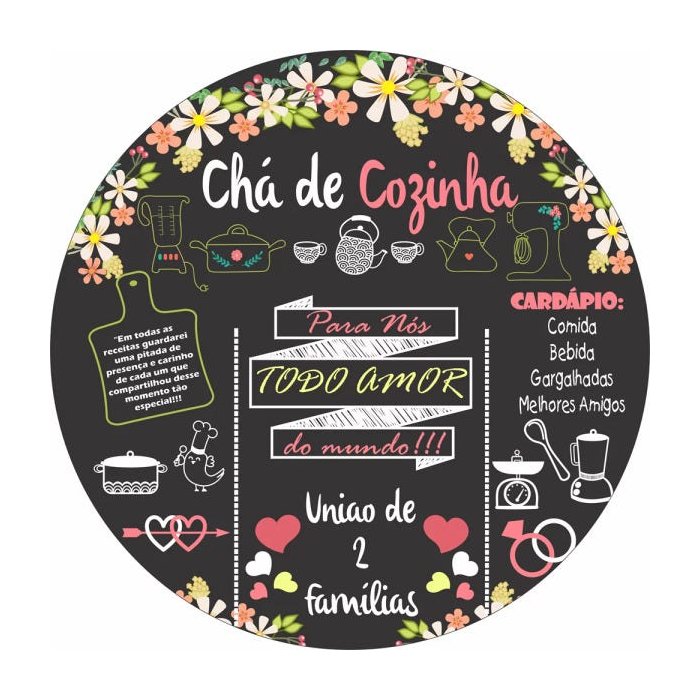 Painel De Tecido Sublimado Redondo Chá Bar Chalkboard C/Elástico