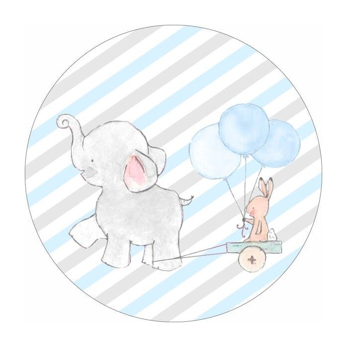 Painel de Tecido Sublimado Redondo Elefantinho Balões Azul com Elastico