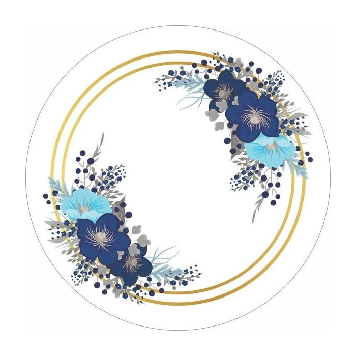Painel de Tecido Sublimado Redondo Floral Azul Arcos Dourados C/Elástico