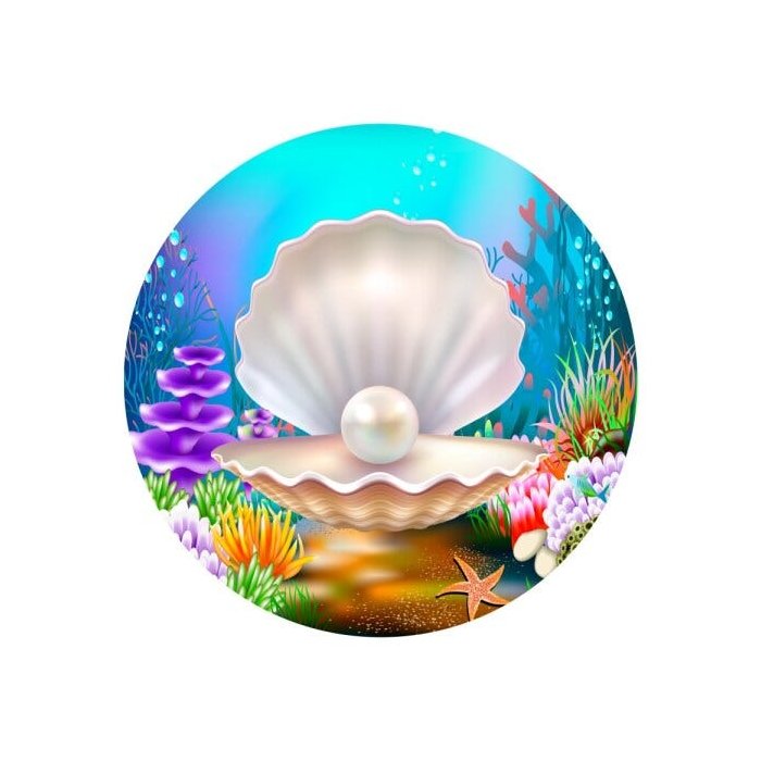 Painel de Tecido Sublimado Redondo Fundo Do Mar Concha e Pérola com Elástico