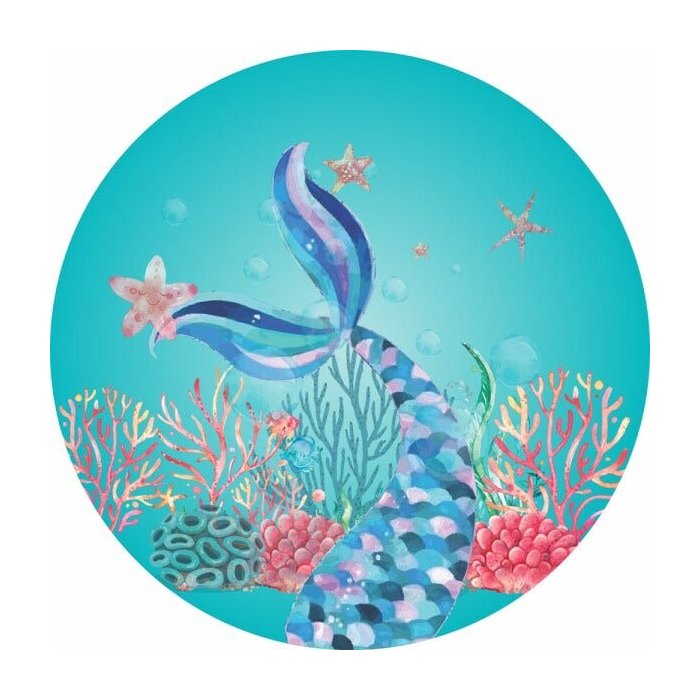 Painel de Tecido Sublimado Redondo Fundo Do Mar Rabo de Sereia e Estrelas Do Mar com Elástico