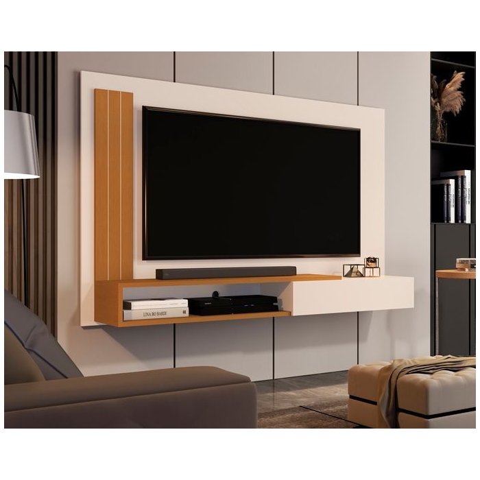 Painel de Tv até 50 P com Nicho e Porta Marina - Cores - Comprar Moveis em Casa: Off White / Nature