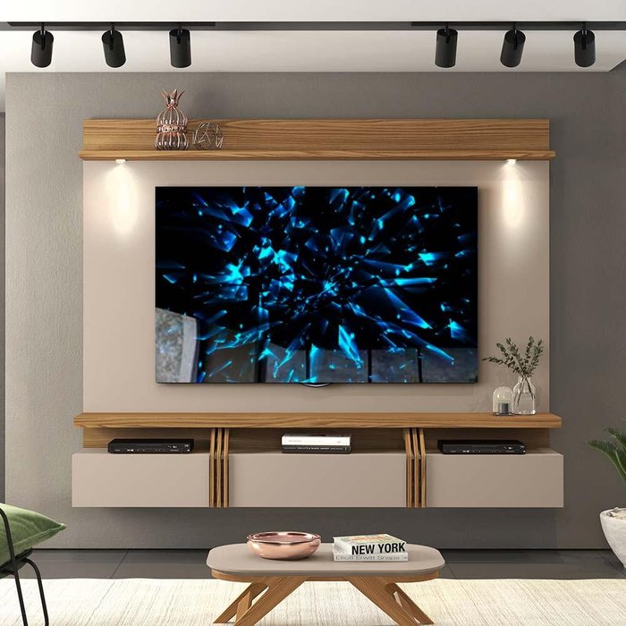 Painel De TV Até 70 Polegadas Com LED Griz Carvalho Nobre Lodi DJ Móveis