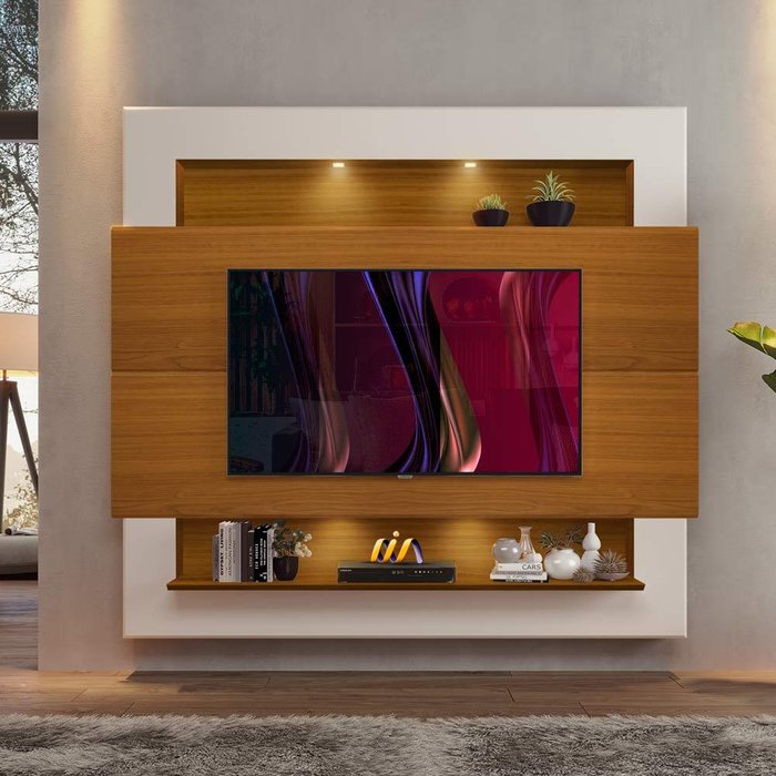 Dimensões do painel home suspenso: Largura 2,10 m; Profundidade 0,31 m; Altura 1,98 m.Itens Inclusos: 1 home para salaO home para sala Milão, da Luapa, é um luxo! Conta com espaço para uma TV de até 75 polegadas. Possui design moderno, com dois painéis centrais que ultrapassam a moldura, trazendo um toque de imponência ao ambiente. É perfeito para a sala de estar, onde você pode receber a família e os amigos, e com certeza irá render muitos elogios! Possui um nicho superior e uma prateleira inferior, que são ideais para objetos de decoração e porta-retratos, e também para acomodar seus aparelhos eletrônicos. Além disso, possui iluminação em LED tanto no nicho quanto na prateleira, o que torna esse produto ainda mais elegante! Transforme sua sala de estar no ambiente de entretenimento dos sonhos!Complexidade da montagem: Média, pode ser montado por apenas uma pessoa e/ou necessite de maior conhecimento para montagemRecomendações de uso, manutenção e limpeza: Limpar com flanela ou pano macio seco, não utilizar produtos abrasivos, desengordurantes, álcool ou solvente. Não expor o produto diretamente à luz solar e à umidadeGarantia: 3 mesesOBS: Foto meramente ilustrativa, objetos, utensílios e decoração não fazem parte do produto.Tonalidade das cores poderão sofrer alterações conforme a configuração de cada monitor ou tela do smartphone.