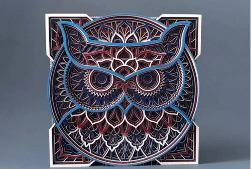 Painel decorativo coruja em camadas mdf cores 59cm
