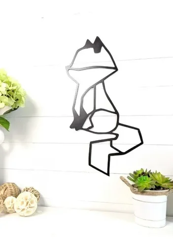 Painel Decorativo Raposa geometrico mdf preto 59cm