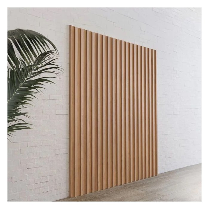 - Cada painel é composto por uma chapa de MDF de 9mm e 6 ripas de 15mm que já vem presas a chapa;