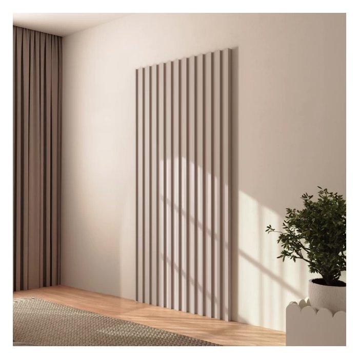 - Cada painel é composto por uma chapa de MDF de 9mm e 6 ripas de 15mm que já vem presas a chapa;