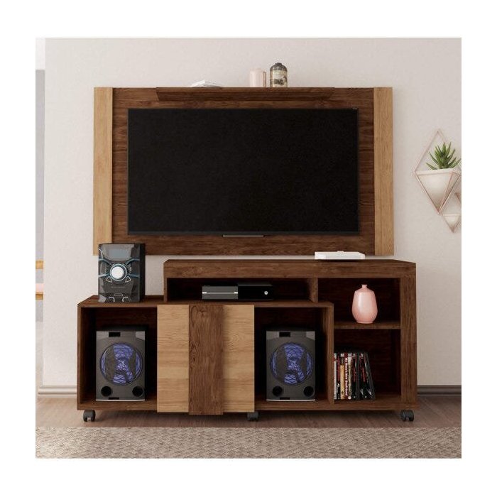 Painel e Rack para TV Até 55 Polegadas Premium Caemmun Havana/Buriti/Off White