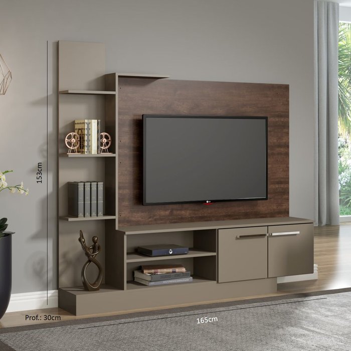 Com as dimensões de 165 cm largura, 30 cm de profundidade e 155 cm de altura, o Home para TV 0633, da Soluzione Móveis, certamente é a escolha perfeita para transformar a sua sala de estar num ambiente mais moderno, charmoso e aconchegante.