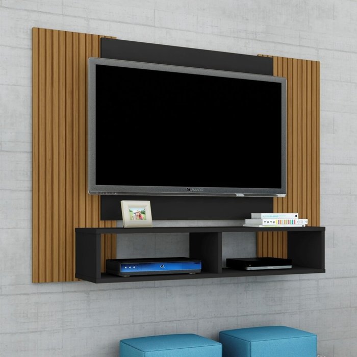 Painel Estante para TV Ouren Preto Ripas O Painel Estante para TV Ouren possui design sofisticado, deixando sua sala com um ambiente mais moderno e bonito. Feito em MDP 15 mm, suportando até 35 kg e ideal para TV's de até 47\", ele conta com prateleira e 2 nichos, que ajudam na organização. O produto tem efeito de Pintura 3D Ripado. Medidas do produto: Altura: 90 cm Largura: 120 cm Comprimento: 28 cm Informações Complementares: Ideal para TVs de até: 47\" Material Principal: MDP 15 mm Gavetas: Não Nichos: Sim (2) Iluminação: Não Portas: Não Necessita Montagem: Sim Itens Inclusos: - 01 Painel para TV; - Kit completo para montagem, manual detalhado de instruções para montagem Garantia - 3 meses contra defeito de fabricação Informações Adicionais: - Fotos meramente ilustrativas do produto no ambiente. - Os objetos que ambientam as fotos não acompanham o produto; - Verificar descrição e tamanho do produto antes da compra. - Avaliar a mercadoria no ato do recebimento e recusar em caso de divergência ou avarias. - Mantenha as informações de contato e endereço de entrega atualizados para entrarmos em contato caso necessário. - Limpar com flanela ou pano macio seco, não utilizar produtos abrasivos, desengordurantes, álcool ou solvente. Não expor o produto diretamente à luz solar e à umidade. * Sugerimos a contratação de um montador profissional para a montagem do produto. Não nos responsabilizamos por avarias causadas no ato da montagem. * Não nos responsabilizamos pela montagem e desmontagem do produto no ato da entrega e devolução, assim como os custos gerados nestas situações. * A transportadora entregará o produto no andar térreo do endereço de entrega. * Não nos responsabilizamos por subir escadas, corredores e elevadores ou transporte por guincho em apartamentos.