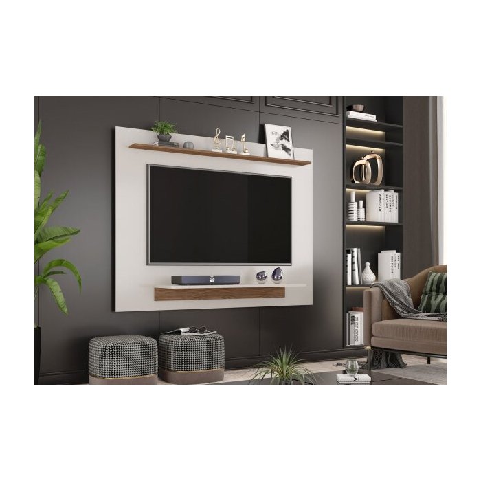 Painel estante prime para tv até 50 pol sala de estar - Off white/freijó