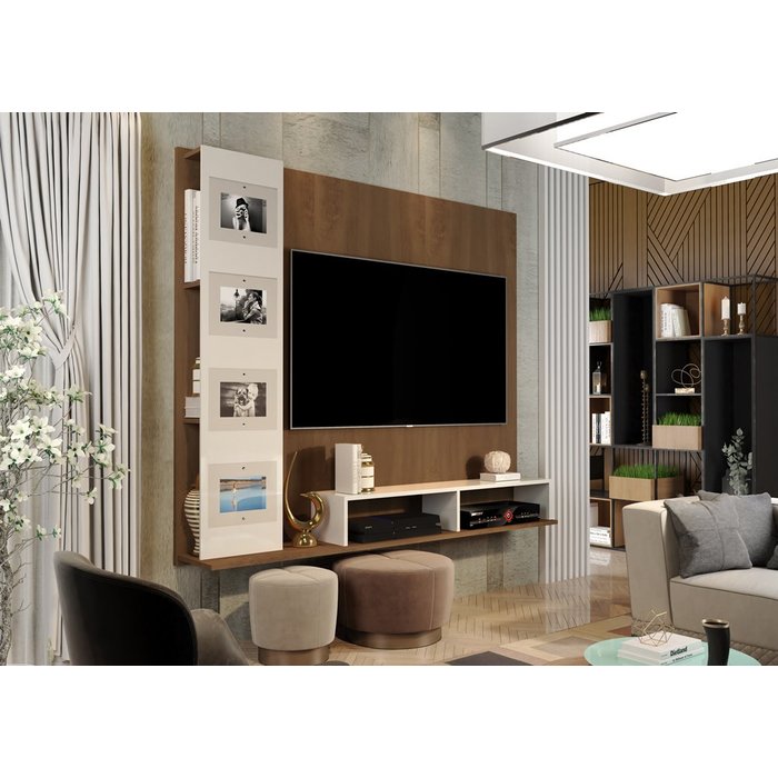 O Painel Estrela tem um visual de requinte e estilo. Desenvolvido em MDP, contacom revestimento em pintura U.V. amadeirado Touch, maior resistência edurabilidade. Um móvel moderno para deixar o ambiente ainda mais aconchegante. O Painel vem com 4 porta-retratos em vidro temperado, para embelezar ainda mais o ambiente. Esse produto tem espaço para TV 125 X 110 cm