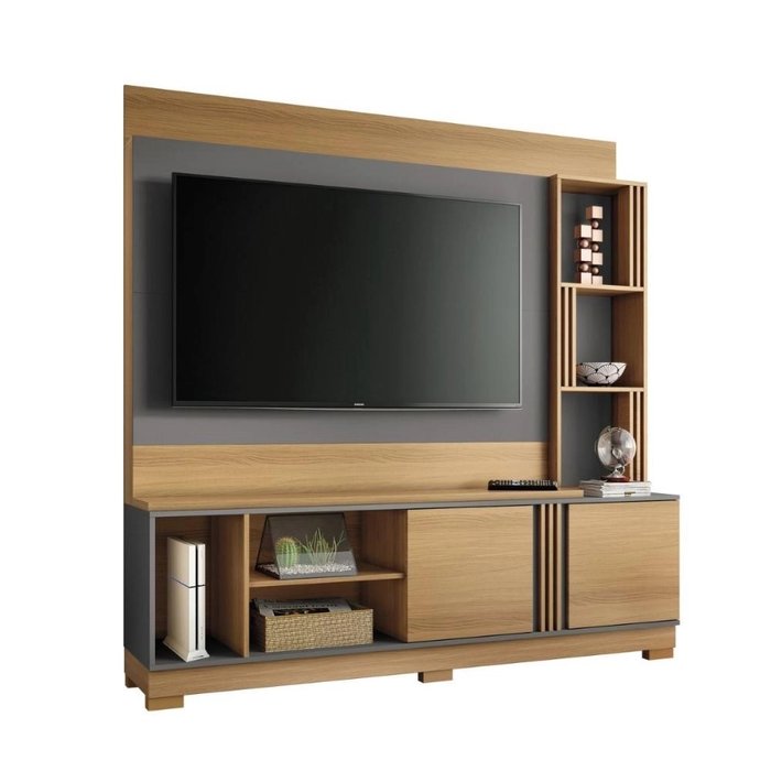Painel Home Livelo Freijó Cinza Moonstone Banana Bit HB Móveis Painel para TV