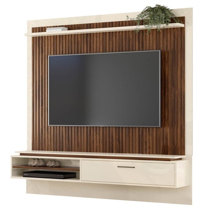 Ideal para ambientes menores, o Painel Home Suspenso 180cm Metta M20 Palisandro/Off White, da Mpozenato, é a escolha certeira para otimizar o espaço de circulação, ao passo que compõe a decoração da sala de estar com modernidade e estilo.