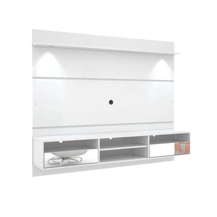 Painel Home Suspenso com Gavetas e LED Angra Branco