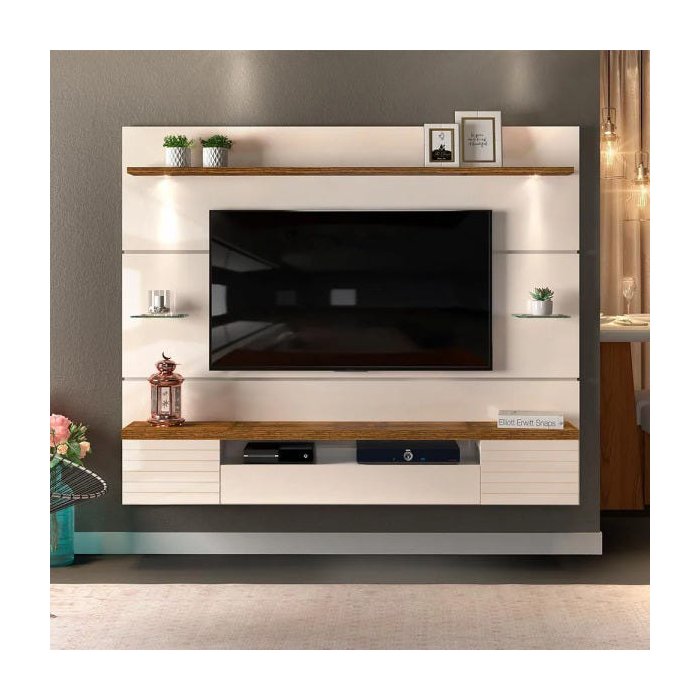 Painel Home Suspenso com LED para TV até 55 Polegadas Estilo | DJ Móveis - Off White e Demolição Off White e Demolição
