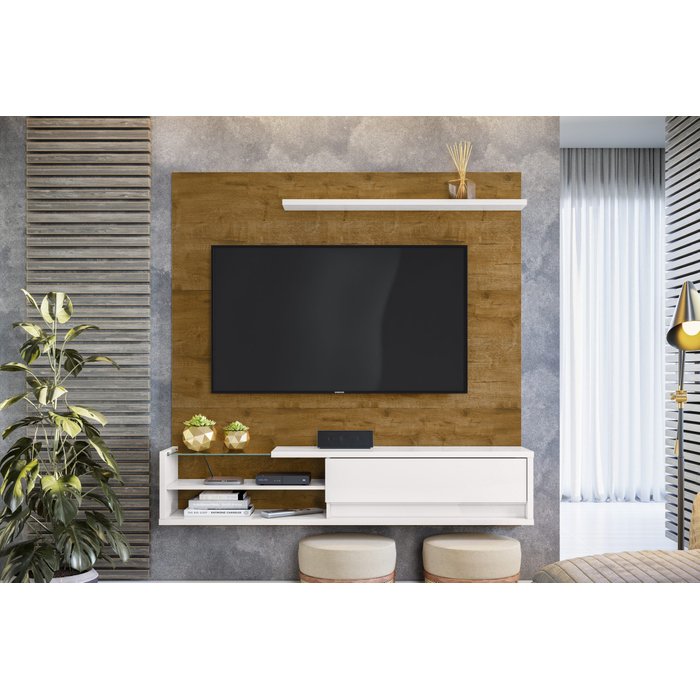 Painel Home Suspenso com Nicho e Porta para TV até 55 Polegadas Dali Madero Canela/Off White