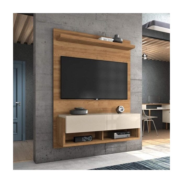Painel Home Suspenso para TVs até 50 Polegadas com Suporte para TV Block Caemmun Buriti/Off White