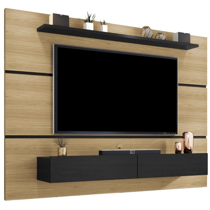 Painel Home Zanzini Arezzo Norton para TV de 60 polegadas 2 portas 1.80 metros – Freijo Preto Fosco