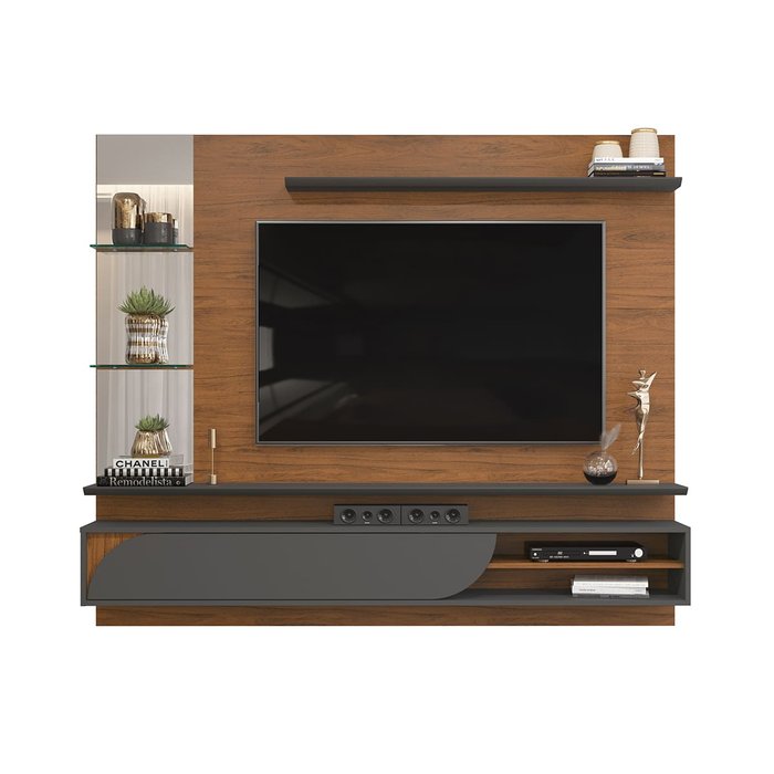 Painel Inácio TV 60 Freijó e Cinza Urbano Bnn Decor DJ Móveis Home Suspenso