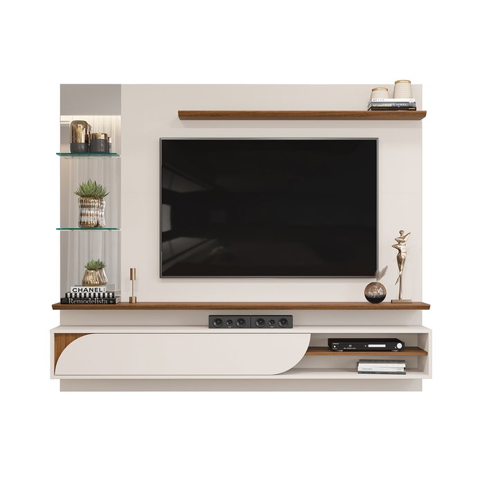 Painel Inácio TV 60 Off White e Freijó Bnn Decor DJ Móveis Home Suspenso