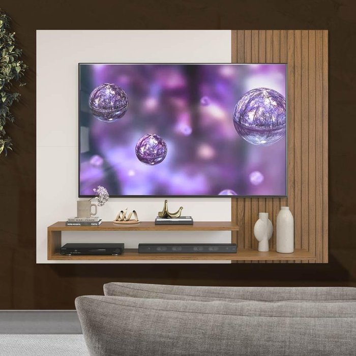 Painel Para Sala Pequena Tv Até 50 Polegadas Ripado Freijó Off White Yves Shop Jm