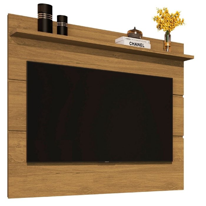 O Painel para TV Mod.2032 possui design com linhas retas que trazem mais modernidade e beleza ao seu ambiente. É uma grande escolha para a sala de estar ou para o quarto.Com capacidade para TV até 50 Polegadas, o painel conta com uma prateleira que tem uma ótima espessura. Assim, há espaço de sobra para a disposição dos itens decorativos.O móvel possui espaços para passagem dos fios e cabos, o que facilita muito na organização e deixa o visual mais limpo. Para completar, o painel acompanha sistema de fixação na parede, para uma instalação mais segura.Dimensões do Produto Montado:Altura: 132 cmLargura: 136 cmProfundidade: 21 cmObservações- Os objetos que ambientam as fotos não acompanham o produto;- Fabricado em MDP;- Pintura UV: Amadeirada;- Acabamento em alto relevo;- Laqueado: Off White;- Espaço para TV: 136 x 90cm;- Espaço para TV em Polegadas até: 50”.ATENÇÃO: Baseamos que uma TV de 50 polegadas tenha em média 111cm de largura x 63cm de altura, lembrando que essa medida é um parâmetro pois as TVs não têm um padrão exato, variando por modelo e fabricante.Sempre indicamos que meça seu aparelho de TV, veja se ele se enquadra no espaço para TV de 136 x 90cm, lembrando de deixar uma folga nessa medida, para que o aparelho não ocupe todo espaço.Dúvidas frequentes1 – O produto vem montado? Se não, vocês realizam a montagem?R.: O produto vai desmontado. Não disponibilizamos serviço de montagem. Todos os produtos seguem com manual de instalação e as ferragens necessárias.2 – Vocês possuem loja física? Posso retirar meu produto em mãos?R.: Não possuímos loja física, apenas loja virtual. Confira as opções de envio ao colocar o seu CEP.3 – Qual é o valor do envio? Posso pagar separadamente?R.: O valor do envio é calculado com base no peso e volume do produto, e no CEP de destino. Você pode calcular o valor e prazo de seu pedido pelo simulador.Caso reste alguma dúvida, é só chamar através do campo de perguntas ou chat, nossa equipe está pronta para atendê-lo.