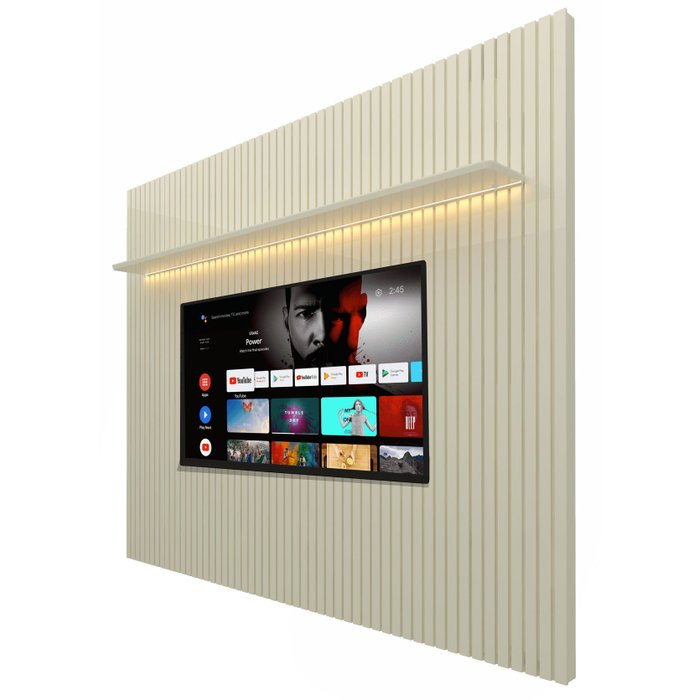 Painel para TV 2.3 Ripado com LED Nobre Off White - Gelius Móveis