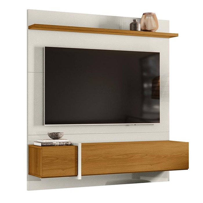 Painel para Tv 55 Polegadas 160cm Avila Lukaliam Off White Perolizado/freijo